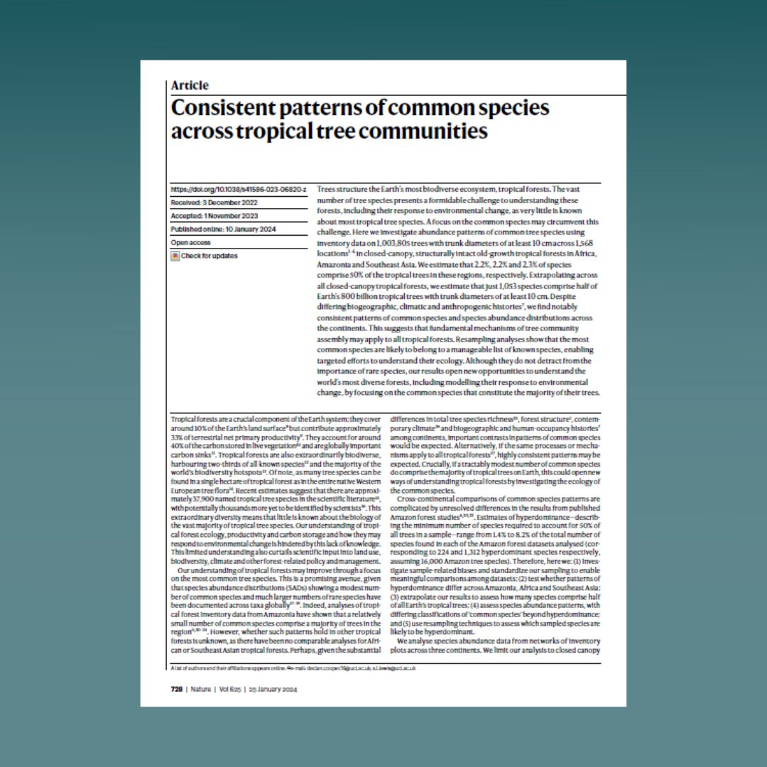 2Consistent patterns of common species across tropical tree communitiesUniversity College London, London, UK, and University of Leeds, Leeds, UKSDG 15